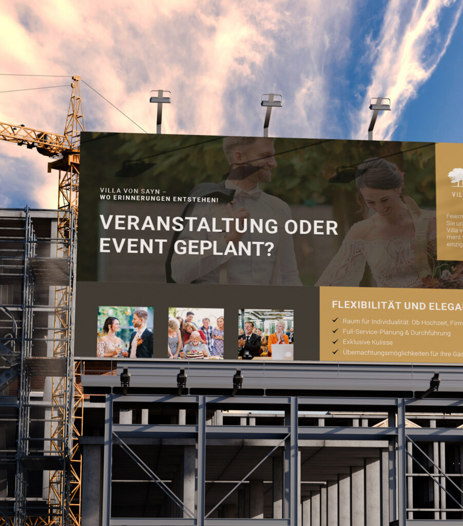 Wir übernehmen den kompletten Prozess für Sie: Standortempfehlung, Design, Druck, Montage und Pflege. Sie müssen lediglich Ziel, Zeitraum und gewünschte Region angeben – wir kümmern uns um den Rest.