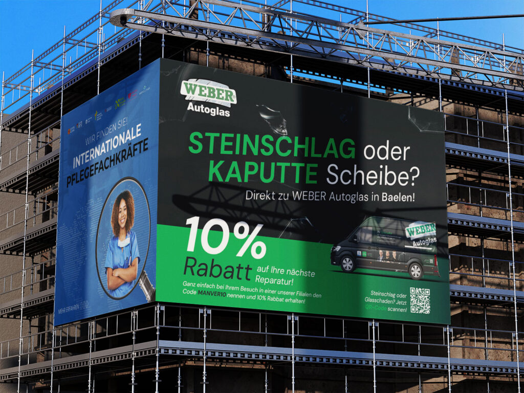 Ob Branding, Recruiting oder Produktlaunch – großformatige Gerüstwerbung schafft enorme Sichtbarkeit, Vertrauen und Wiedererkennung.
